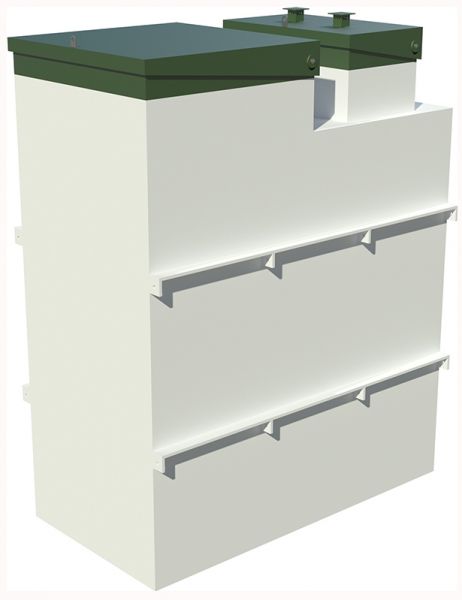 Дополнительным плюсом являются компактные размеры установки, которые позволяют легко подобрать место для монтажа. Септик с размерами 2,03м*1,18м*2,6м можно разместить даже на небольших участках.